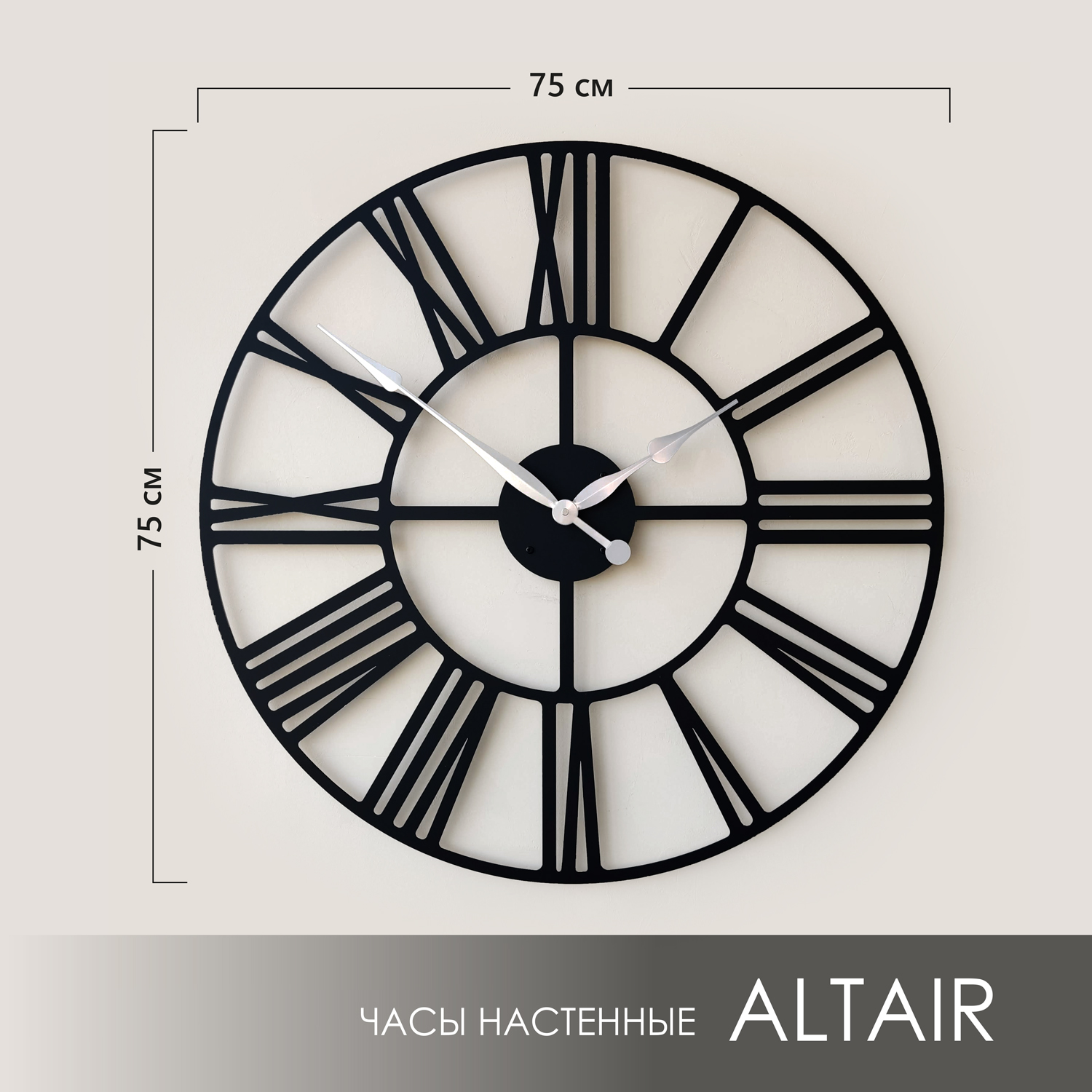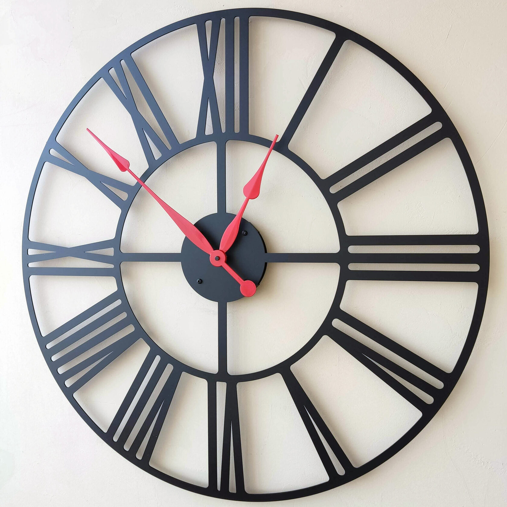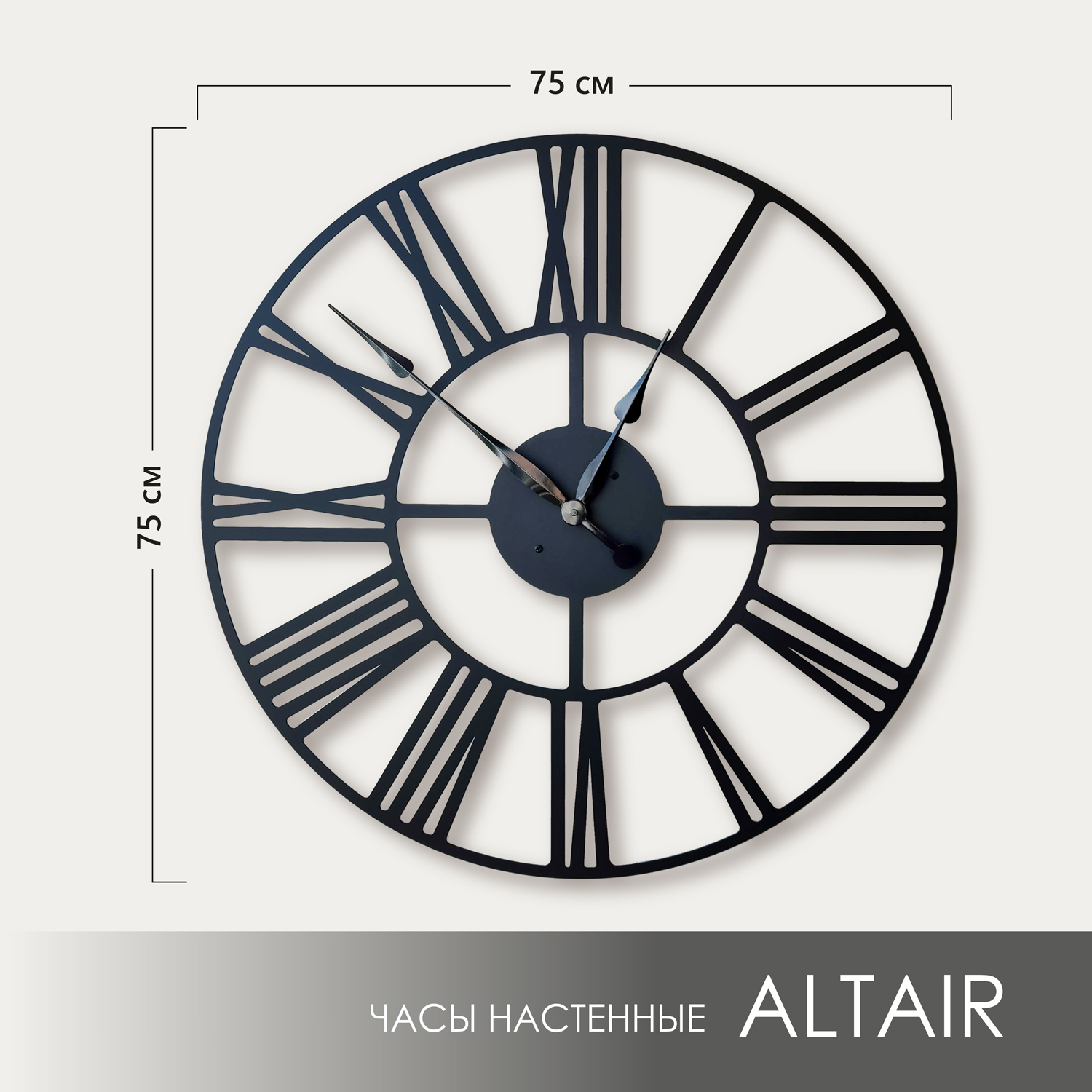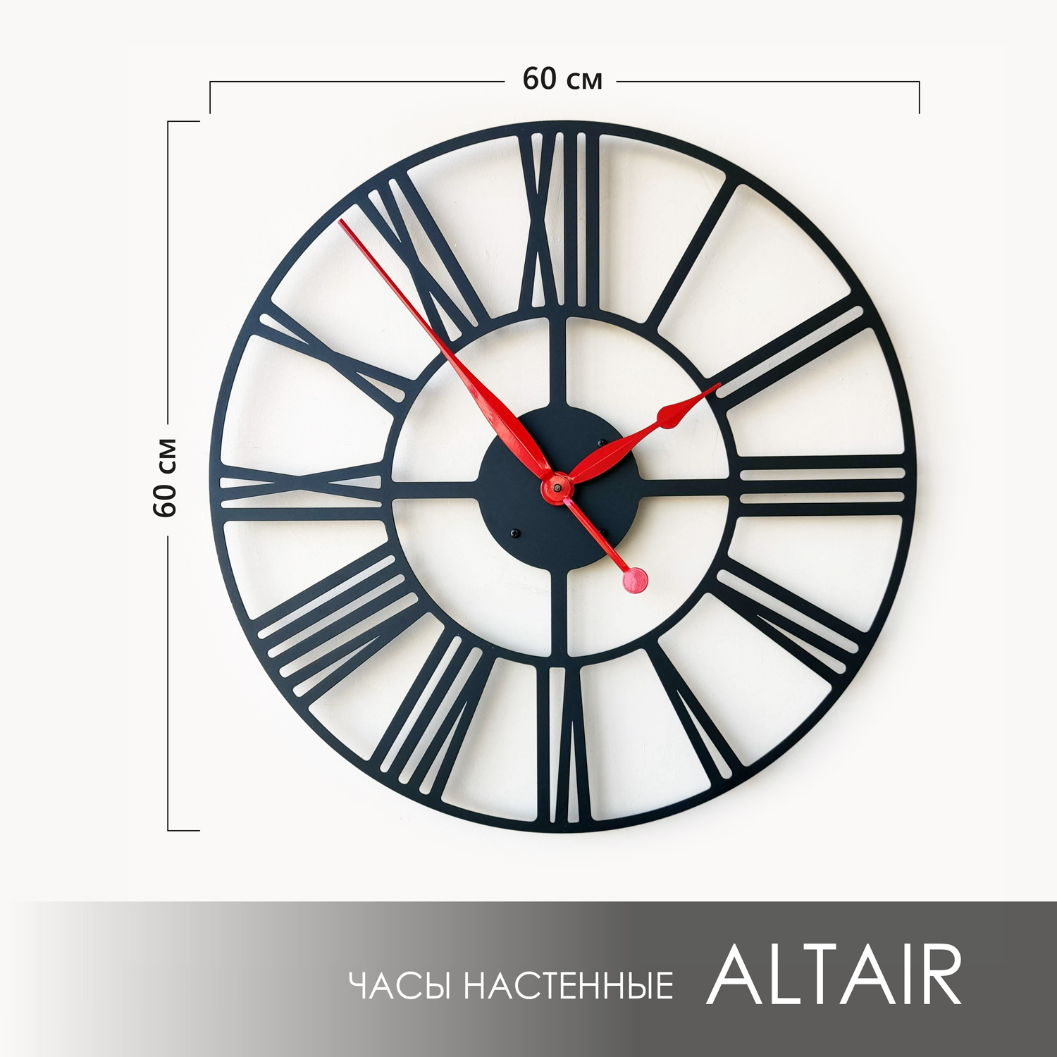 Эти большие настенные часы изготовлены из металла и окрашены экологичной порошковой краской. Они станут стильным домашним предметом интерьера, подчеркивающим красоту пространств, будь то лофт, минимализм, хай-тек, классика, модерн или дизайнерские интерьеры. Необычные большие настенные часы идеально подойдут в качестве подарка. На часах установлен надежный тихий механизм с плавным ходом, работающий от батарейки АА. Все права защищены и принадлежат правообладателю