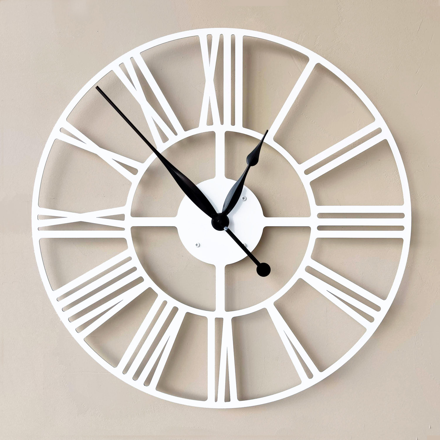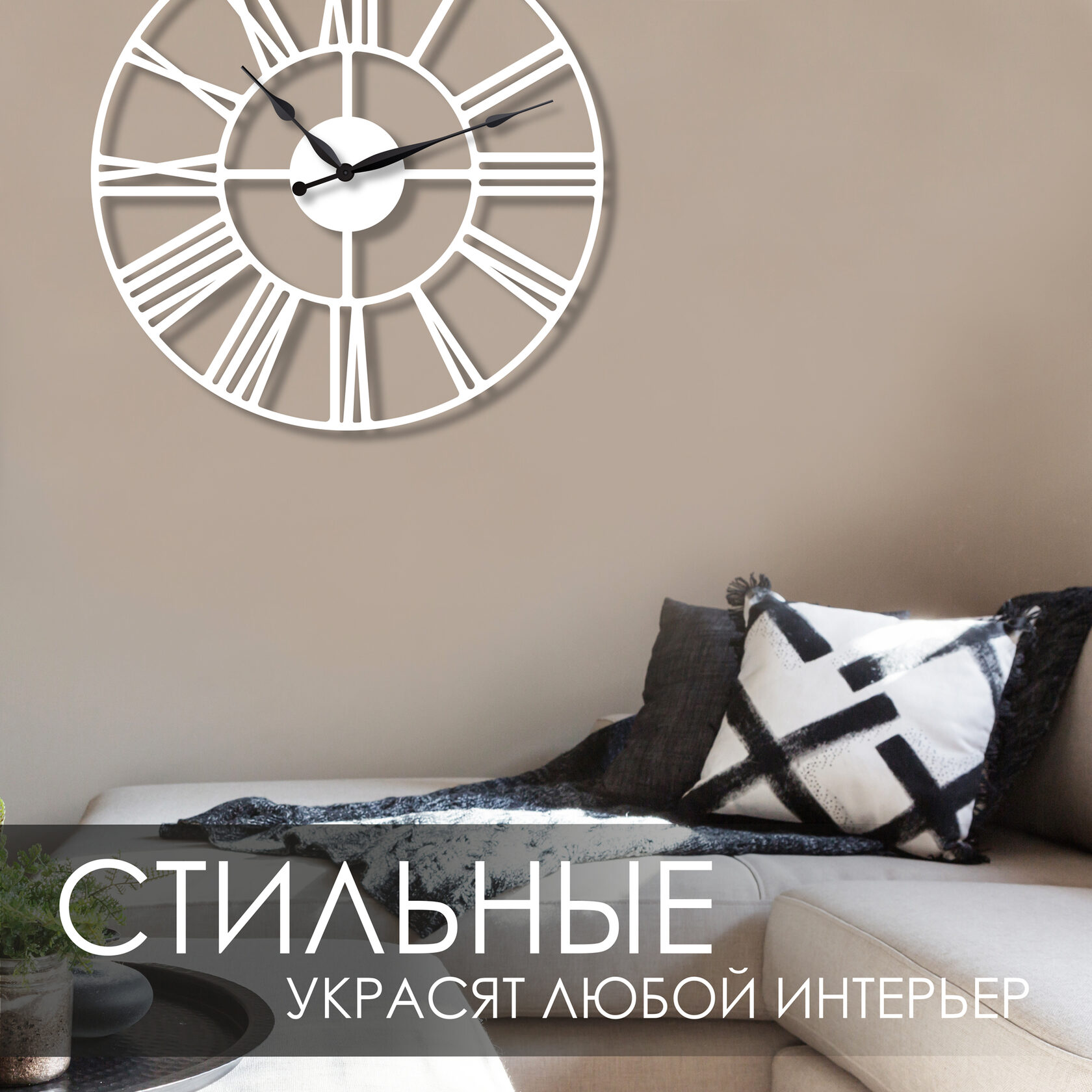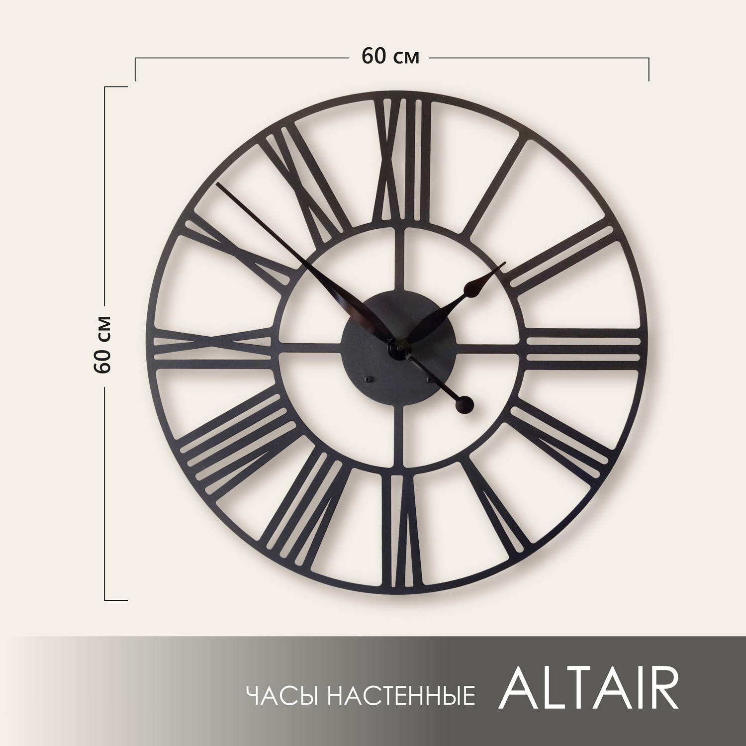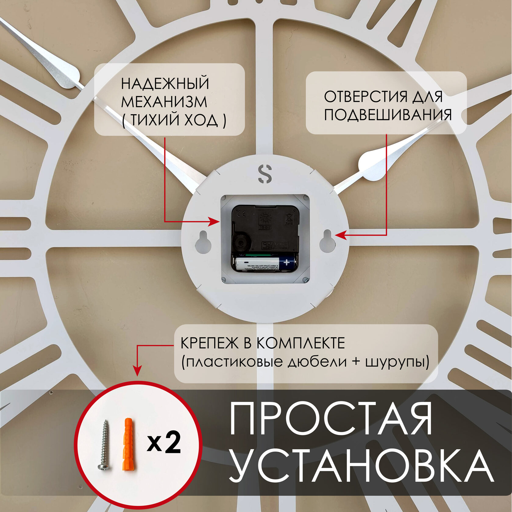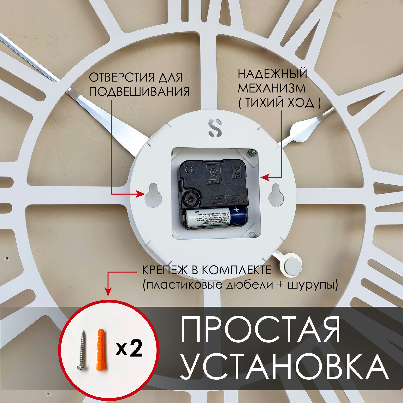 Эти большие настенные часы изготовлены из металла и окрашены экологичной порошковой краской. Они станут стильным домашним предметом интерьера, подчеркивающим красоту пространств, будь то лофт, минимализм, хай-тек, классика, модерн или дизайнерские интерьеры. Необычные большие настенные часы идеально подойдут в качестве подарка. На часах установлен надежный тихий механизм с плавным ходом, работающий от батарейки АА. Все права защищены и принадлежат правообладателю