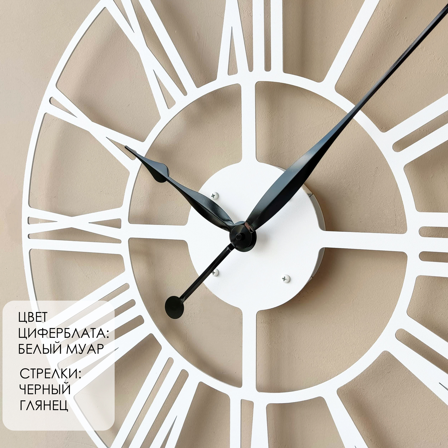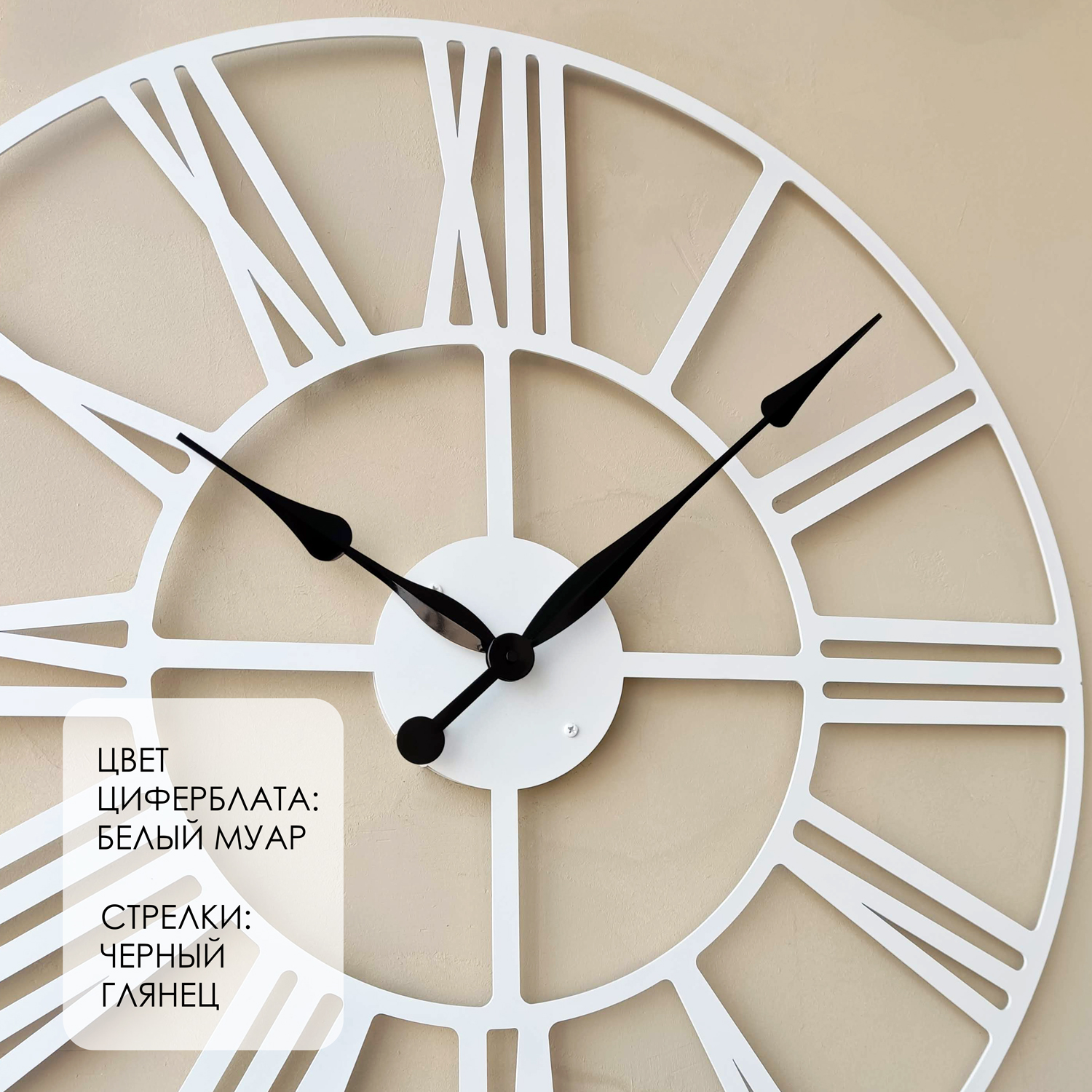 Большие настенные часы из металла Размер: 75х75 см Цвет циферблата: белый муар Цвет стрелок: черный глянец