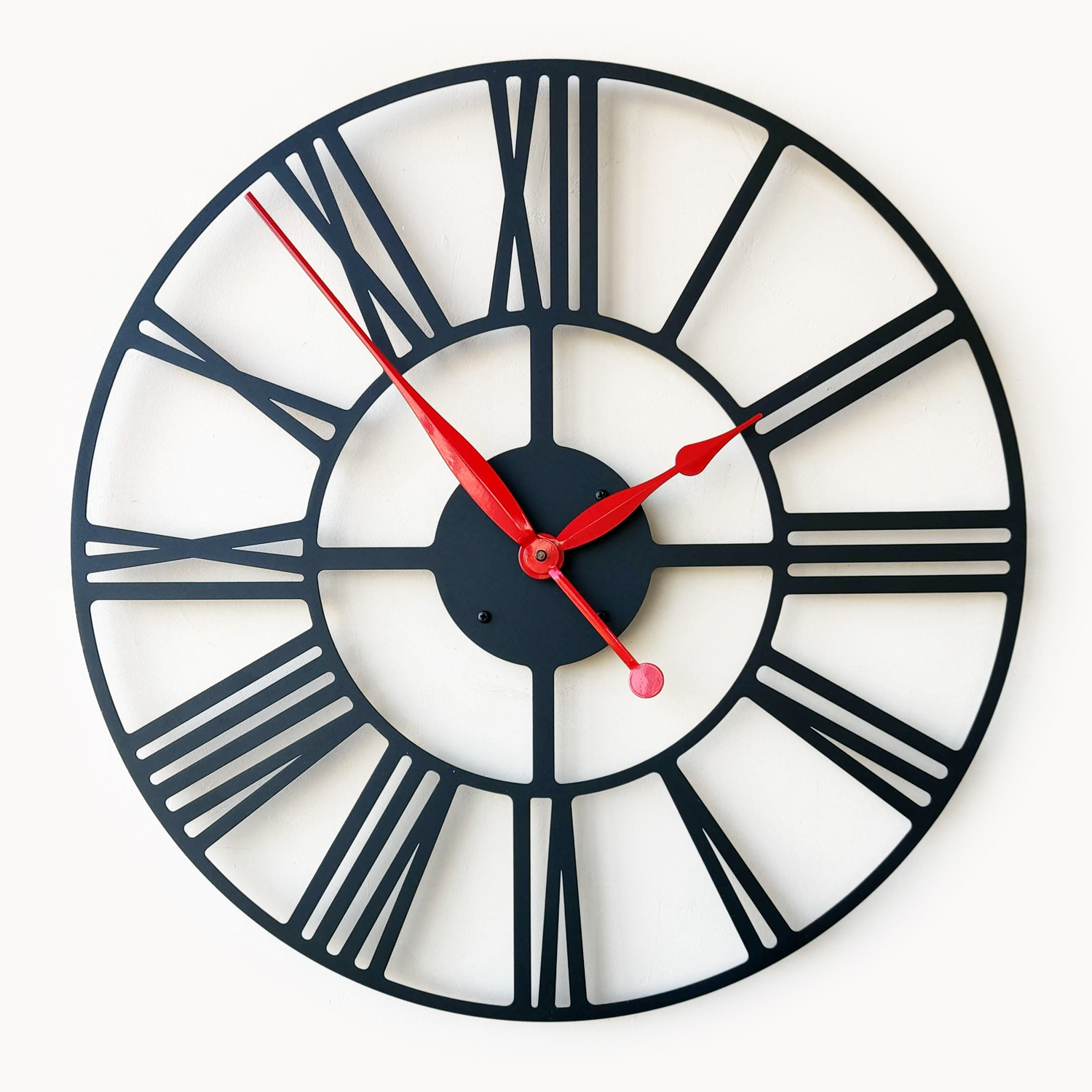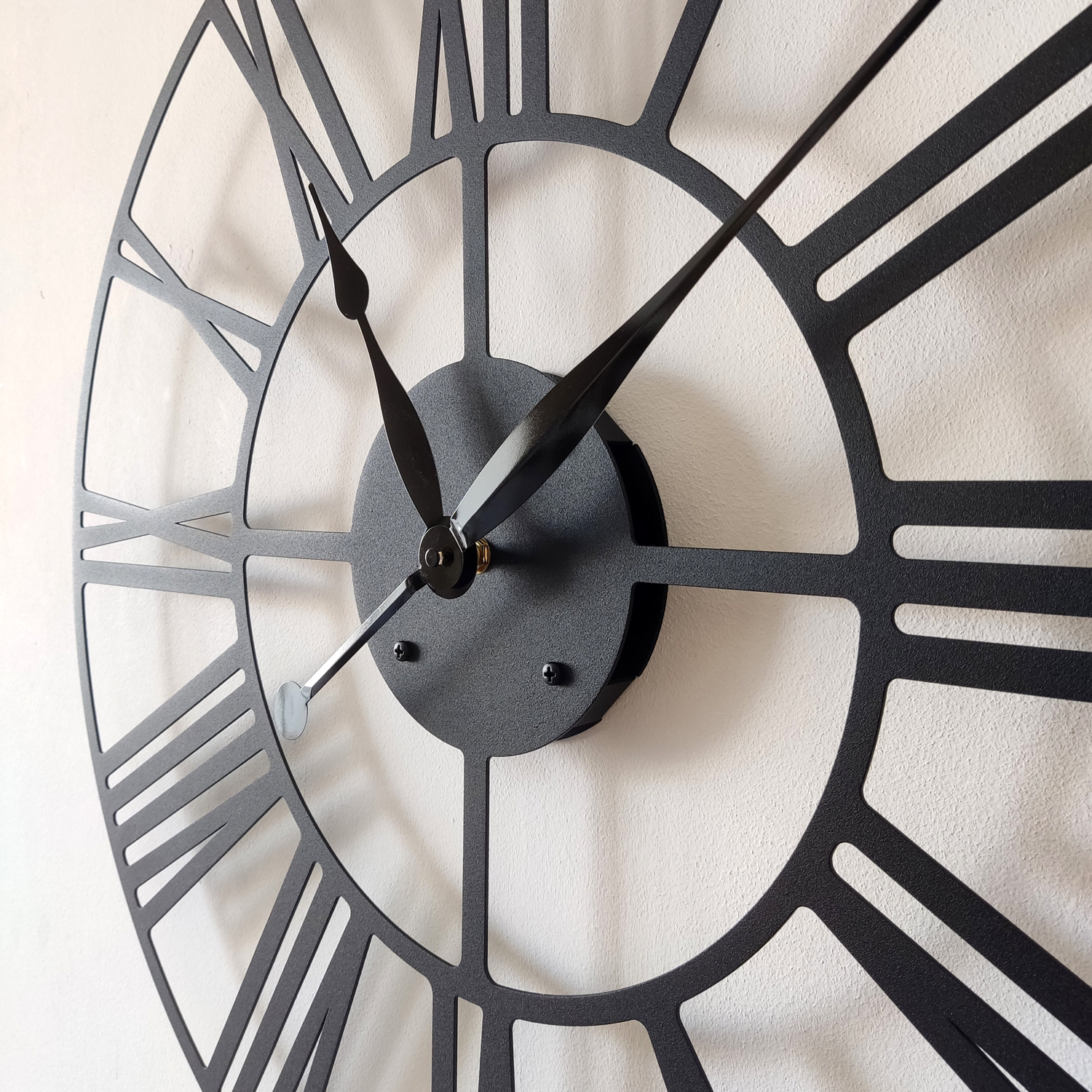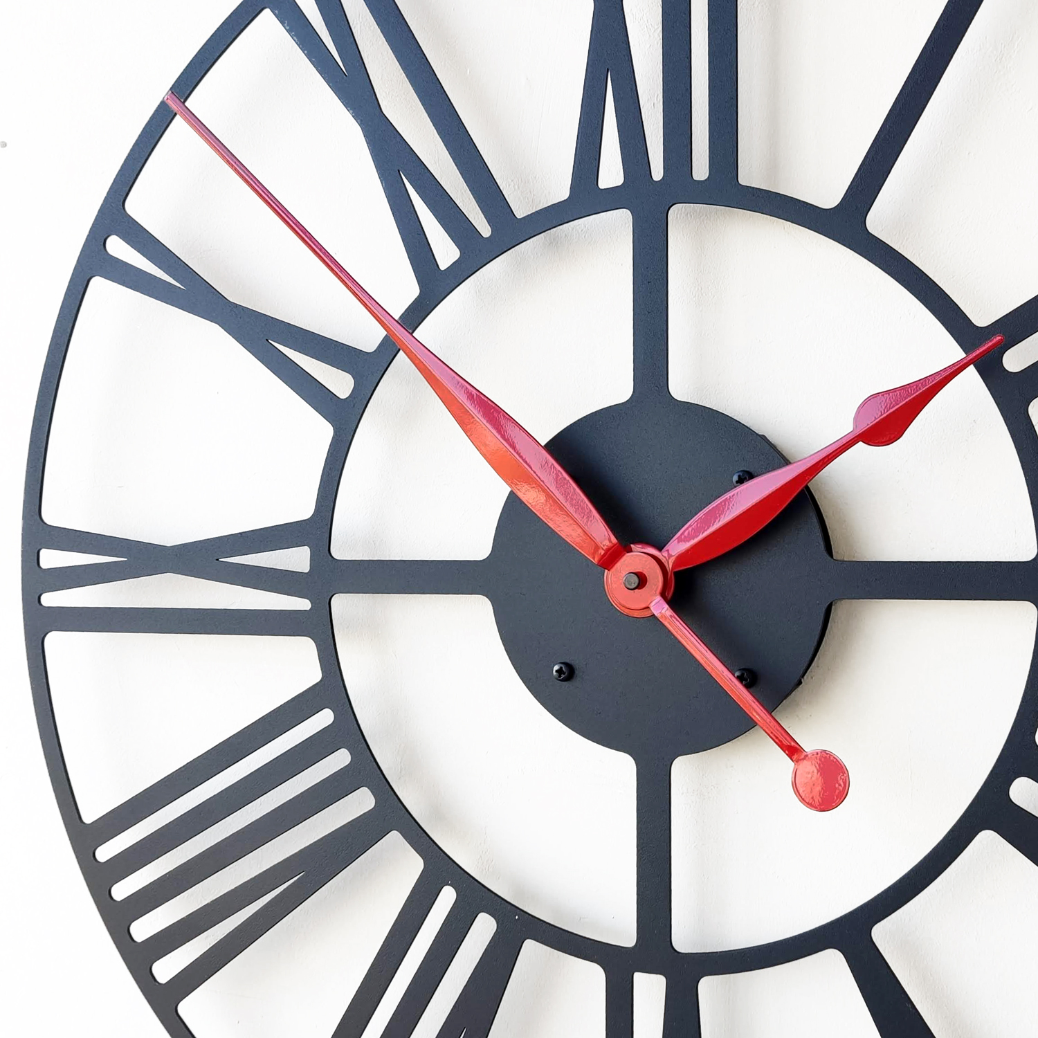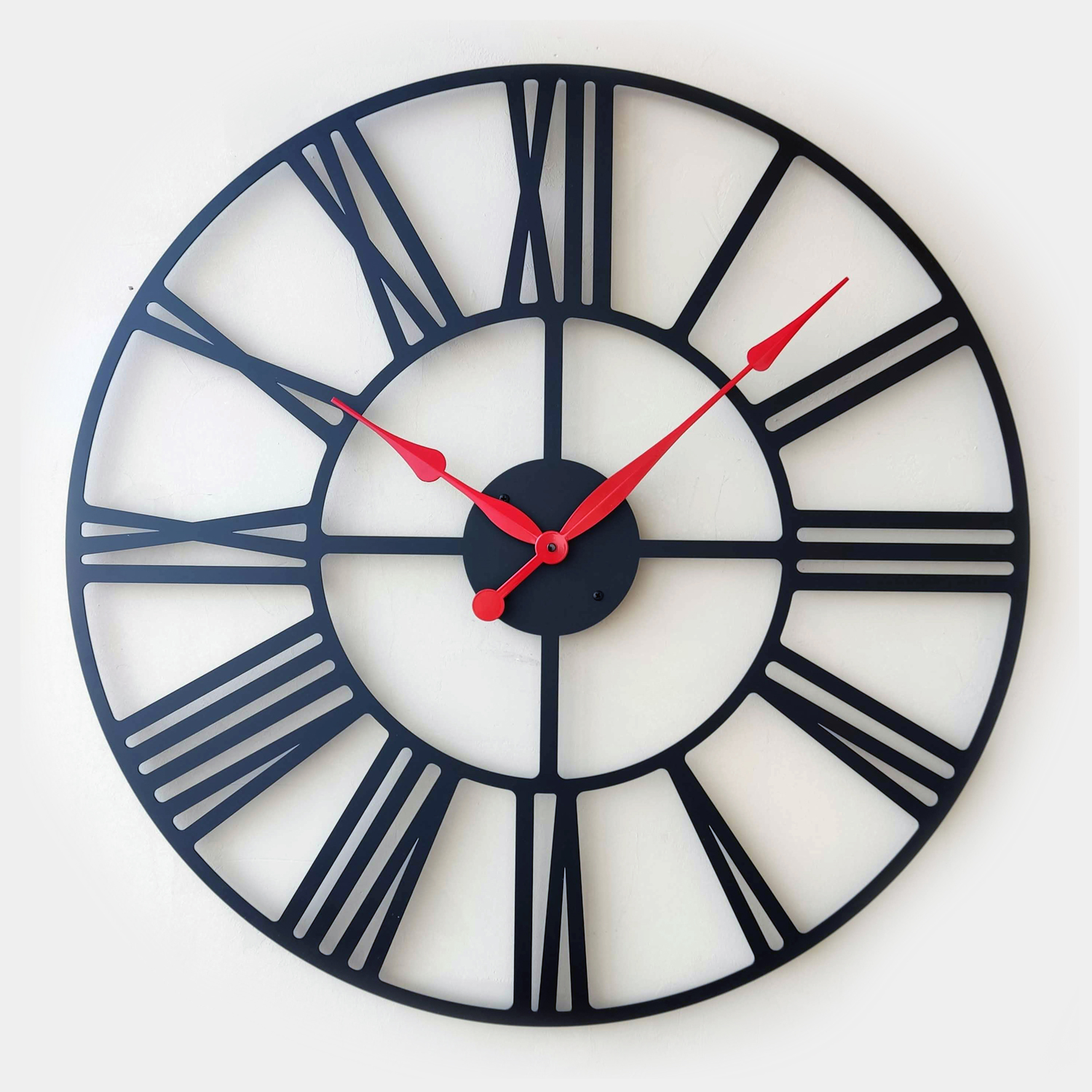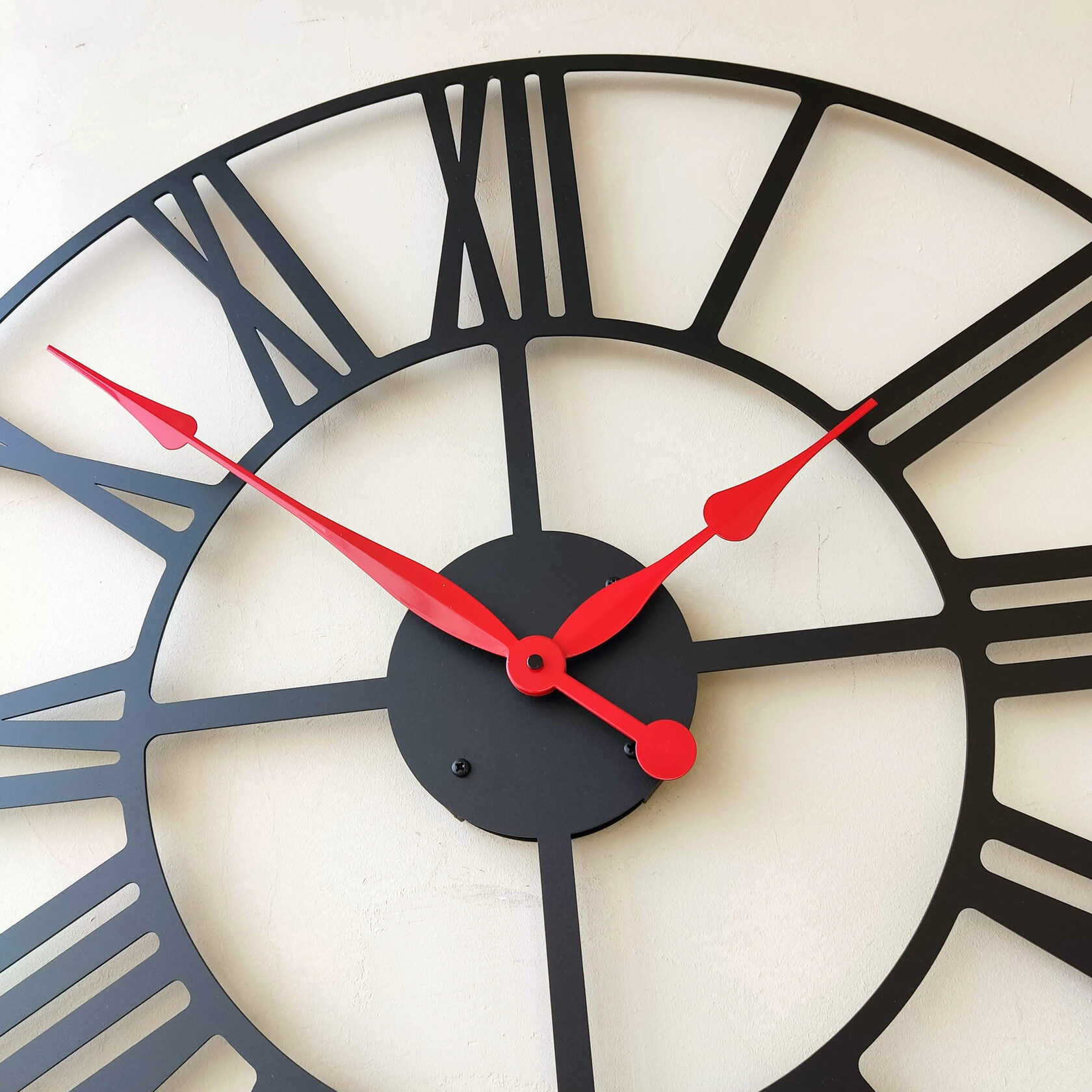 Эти большие настенные часы изготовлены исключительно из металла и окрашены экологичной порошковой краской. Такие часы впишутся в интерьер любого современного пространства. Они станут стильным домашним предметом интерьера, подчеркивающим красоту пространств, будь то лофт, минимализм, хай-тек, классика, модерн или дизайнерские интерьеры. Необычные большие настенные часы идеально подойдут в качестве подарка. На часах установлен надежный тихий механизм с плавным ходом, работающий от батарейки АА. Все права защищены и принадлежат правообладателю