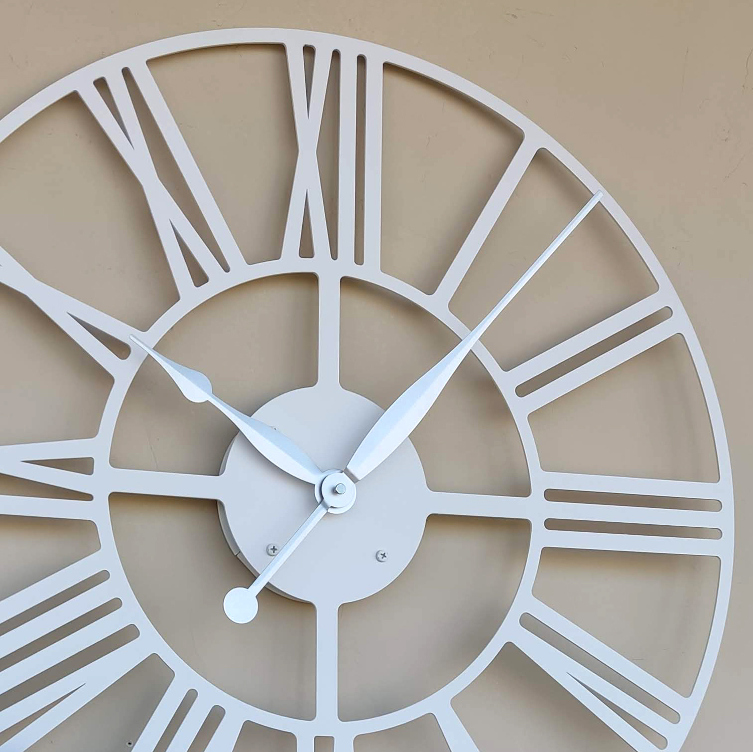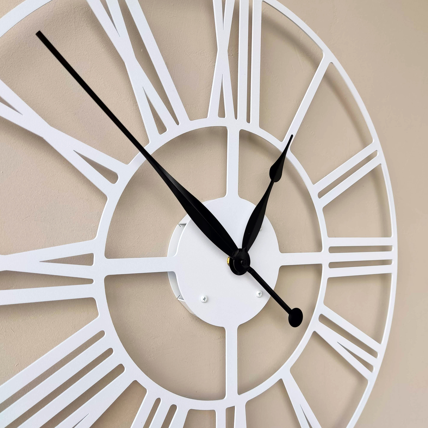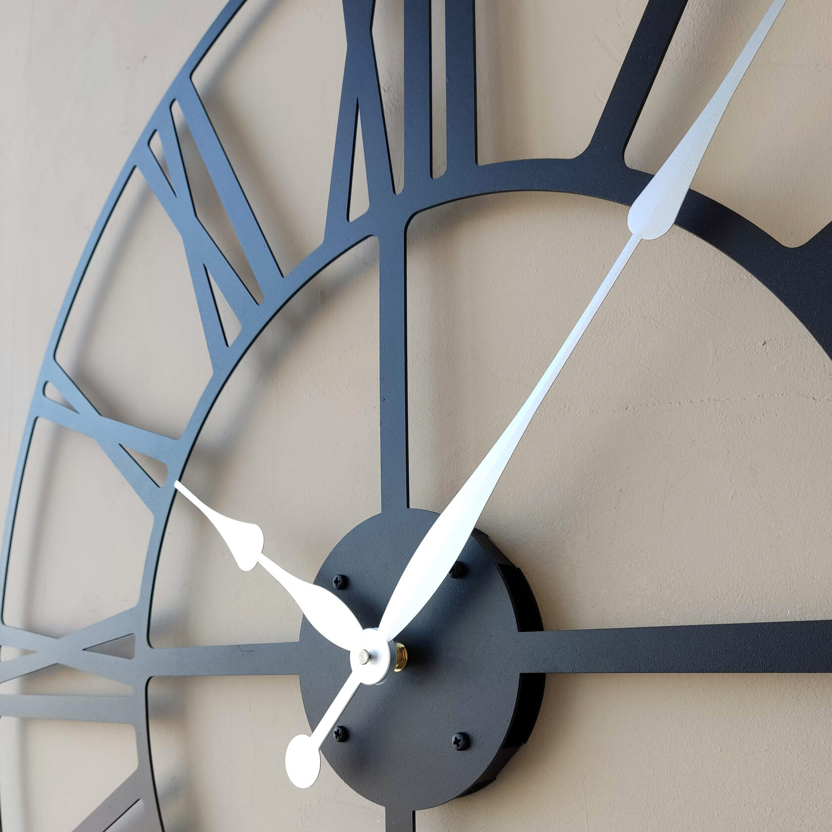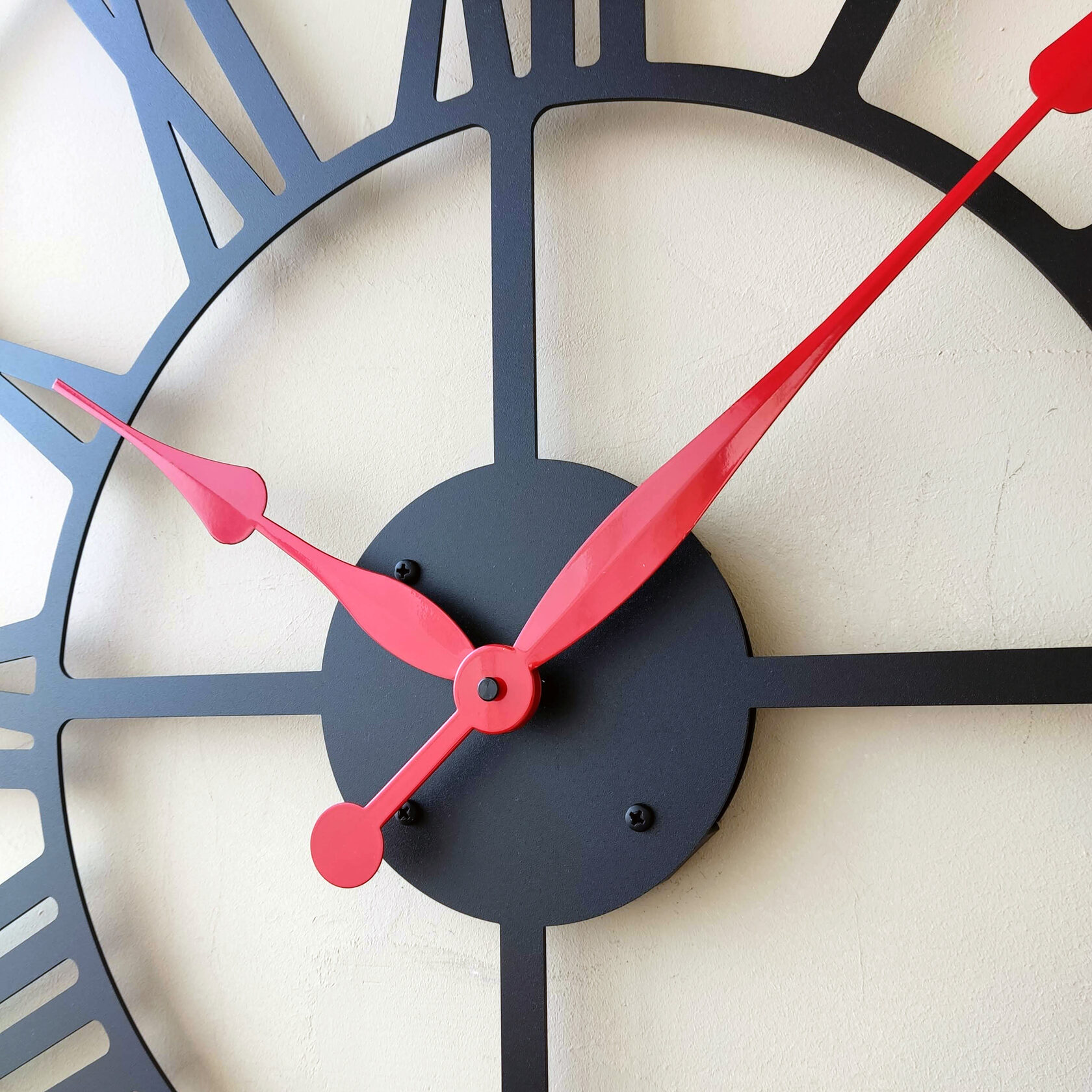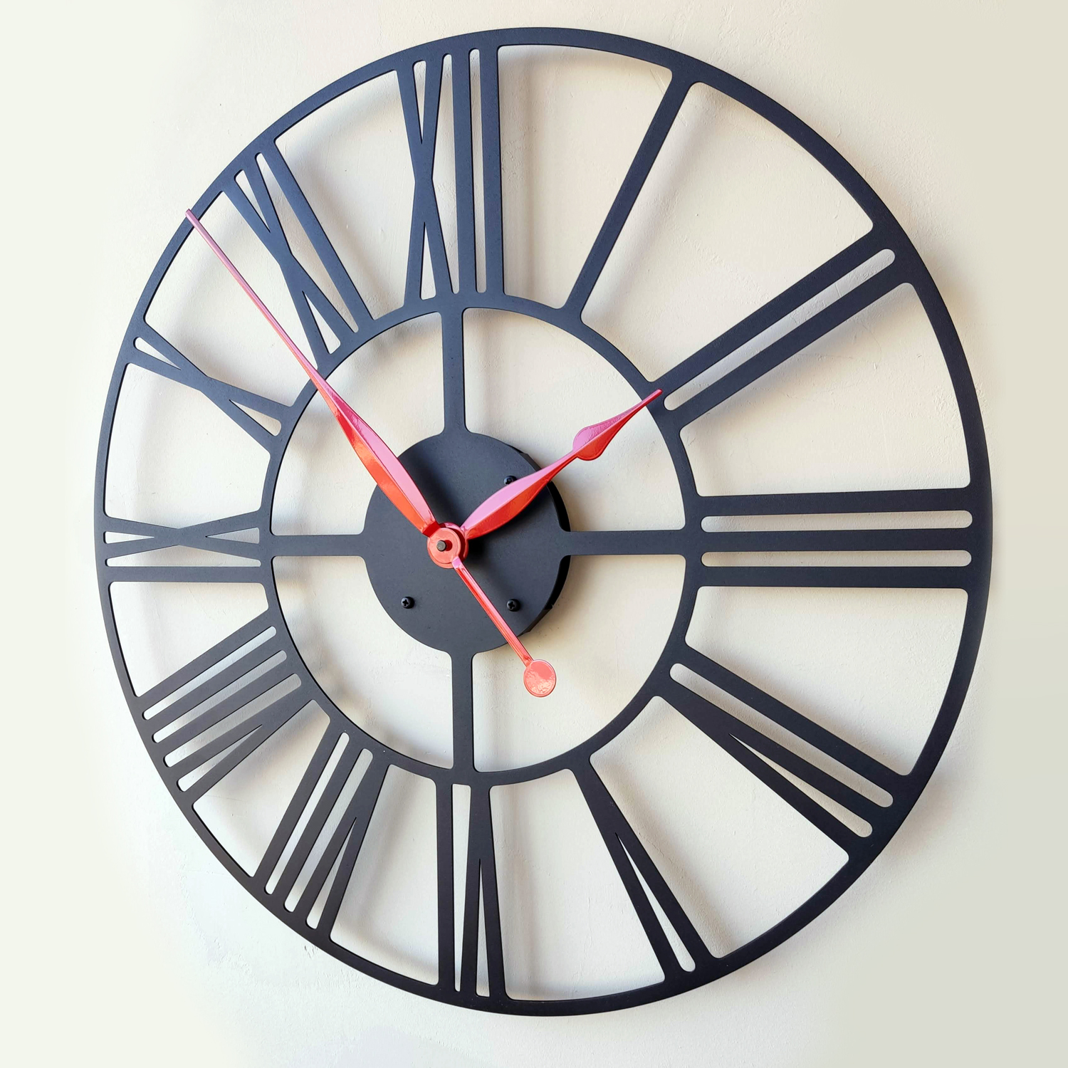 Эти большие настенные часы изготовлены исключительно из металла и окрашены экологичной порошковой краской. Такие часы впишутся в интерьер любого современного пространства. Они станут стильным домашним предметом интерьера, подчеркивающим красоту пространств, будь то лофт, минимализм, хай-тек, классика, модерн или дизайнерские интерьеры. Необычные большие настенные часы идеально подойдут в качестве подарка. На часах установлен надежный тихий механизм с плавным ходом, работающий от батарейки АА. Все права защищены и принадлежат правообладателю