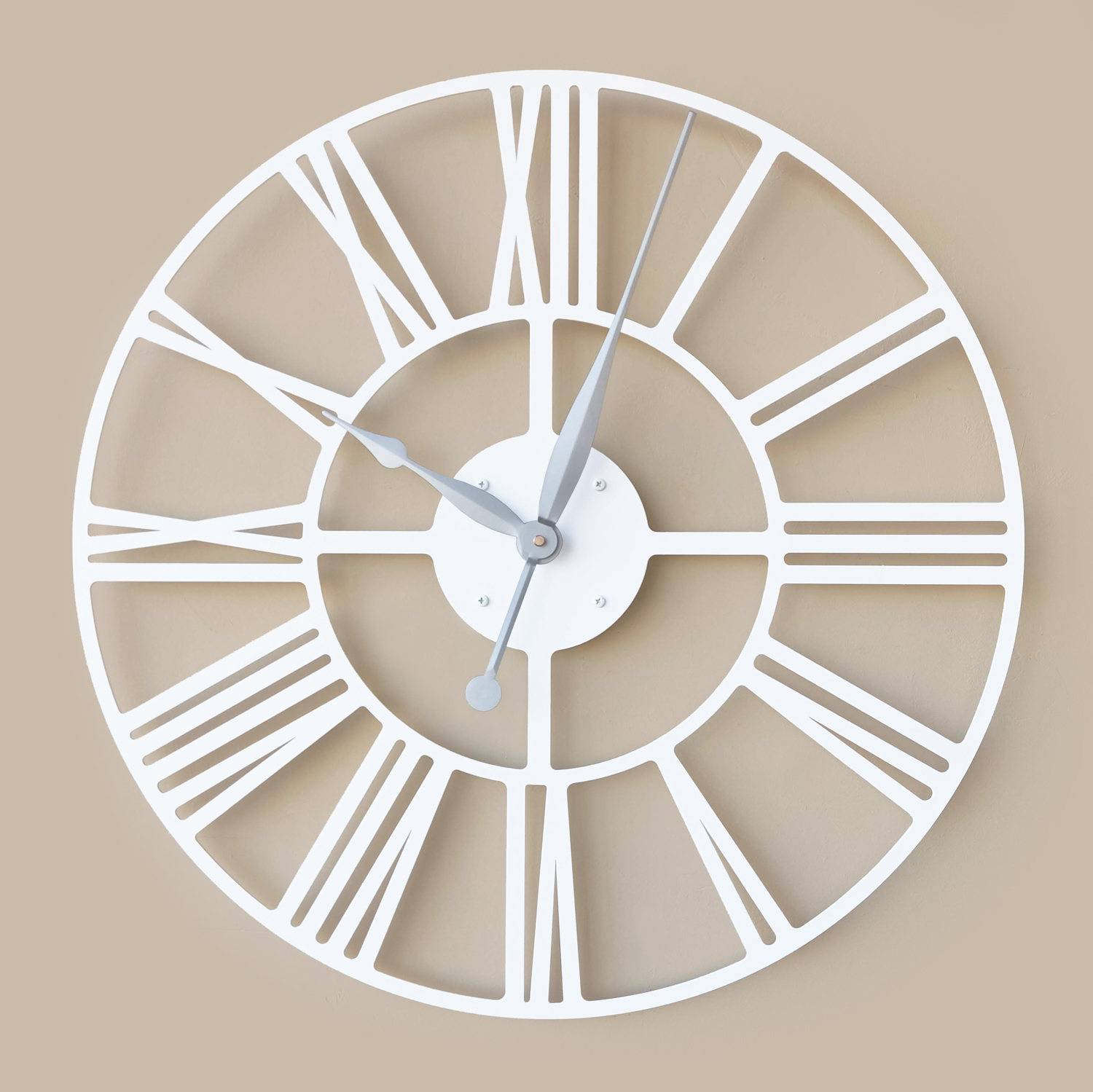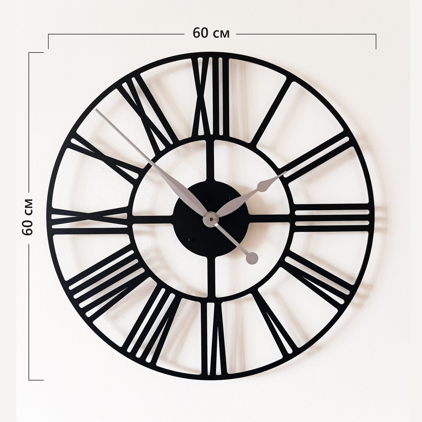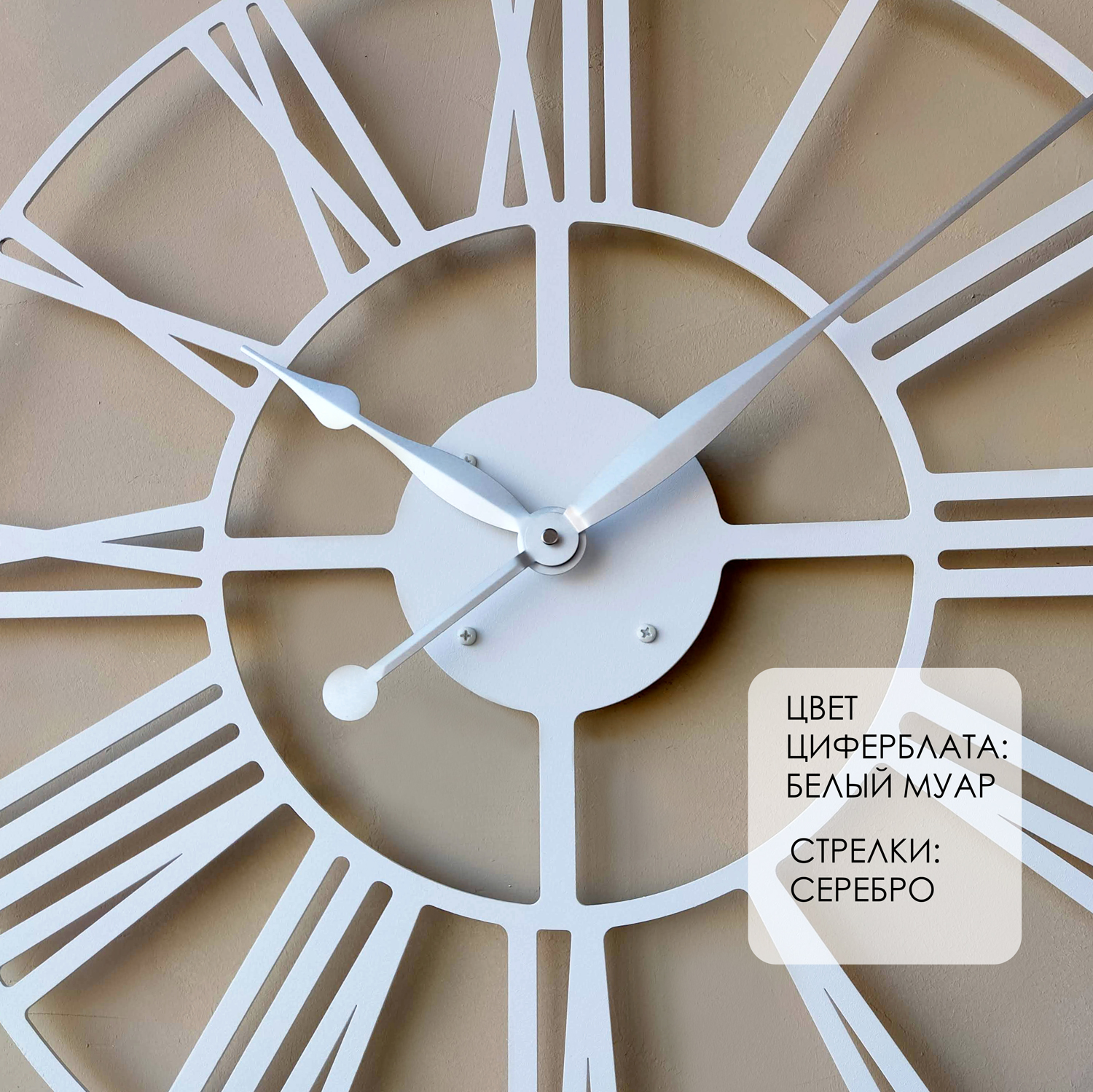Большие настенные часы из металла Размер: 60х60 см Цвет циферблата: белый Цвет стрелок: серебро