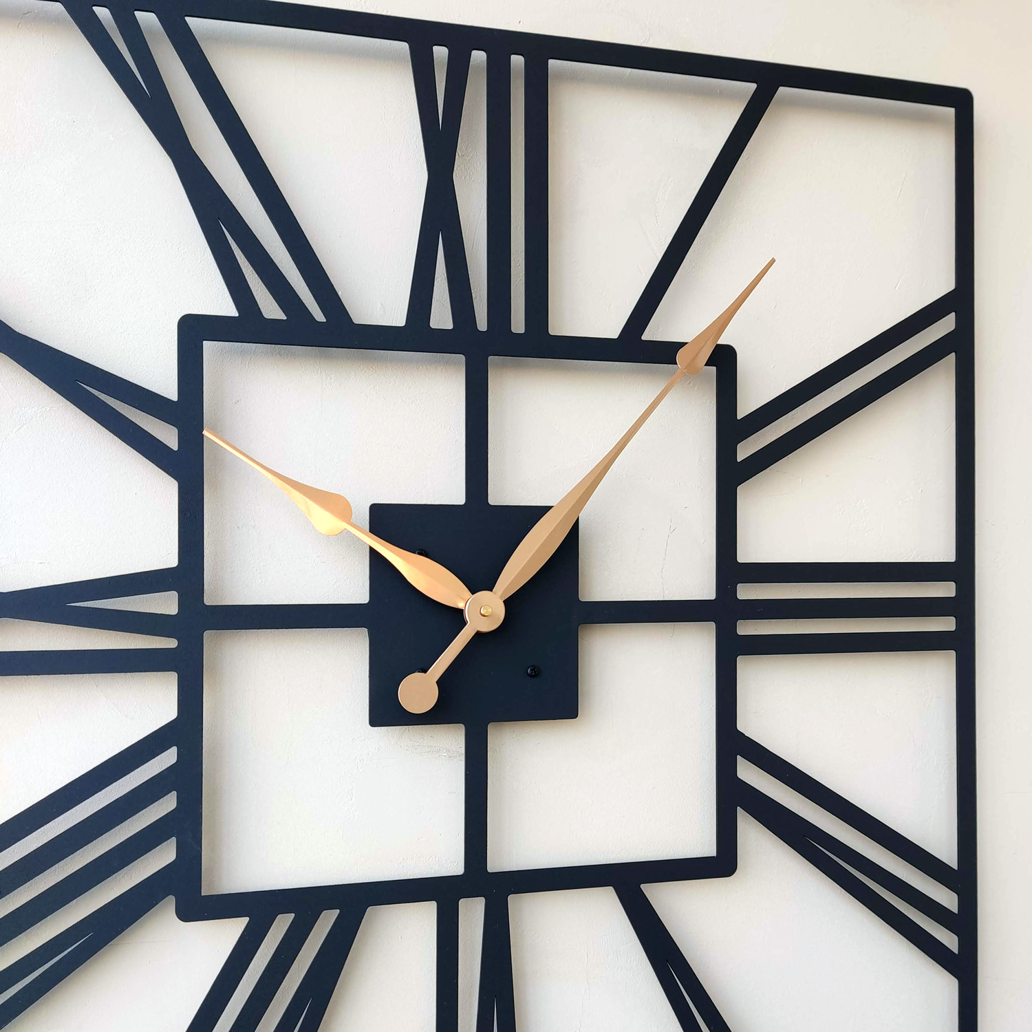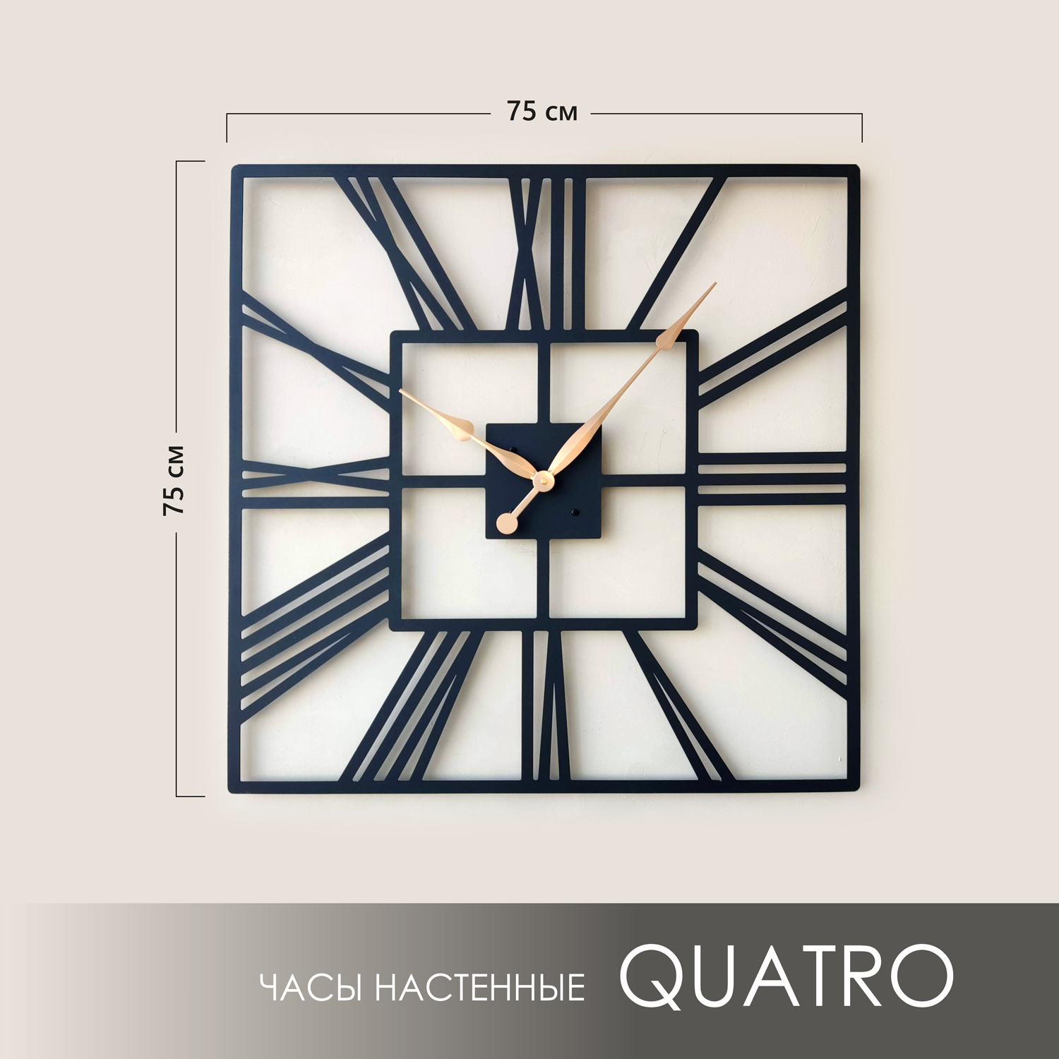 Большие настенные часы из металла Размер 75x75 см Цвет циферблата: черный муар Цвет стрелок: золото