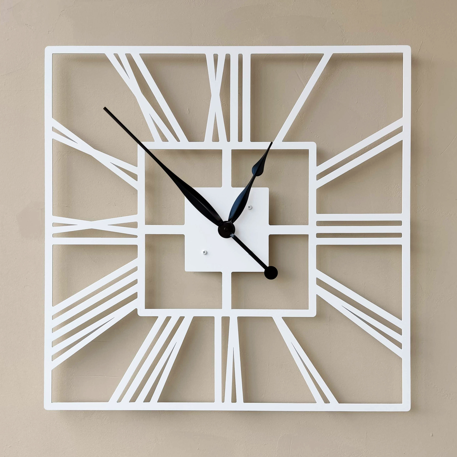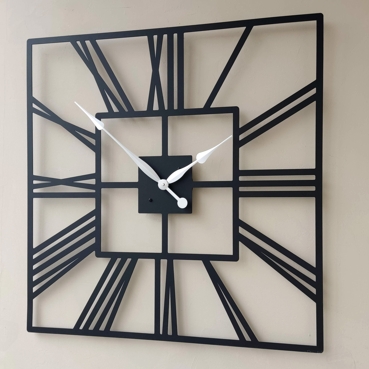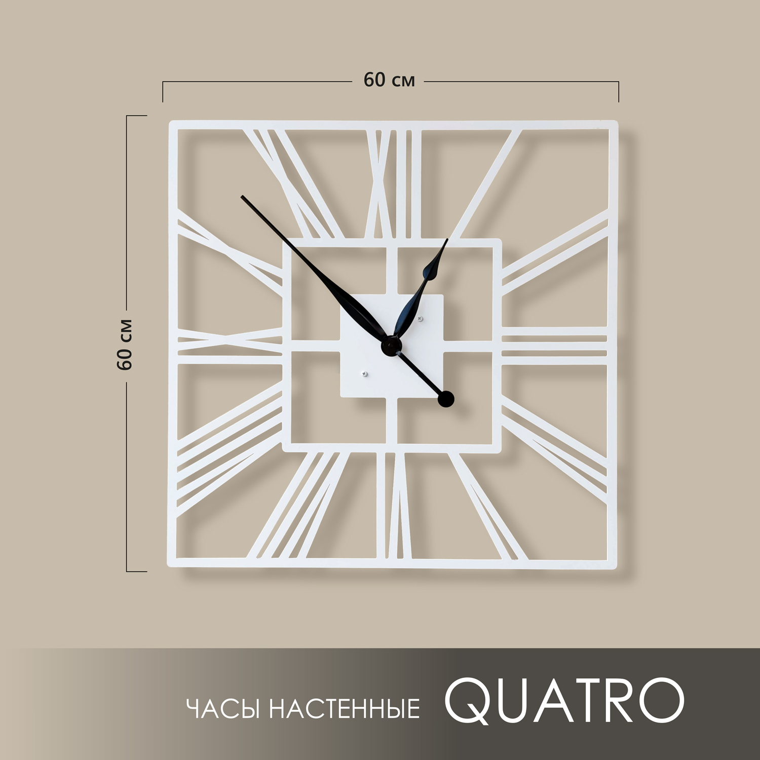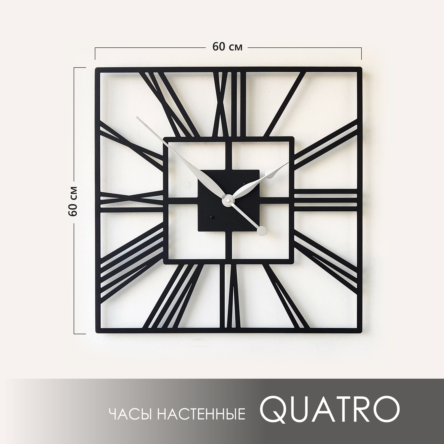 Большие настенные часы из металла Размер 60x60 см Цвет циферблата: белый муар Цвет стрелок: черный глянец