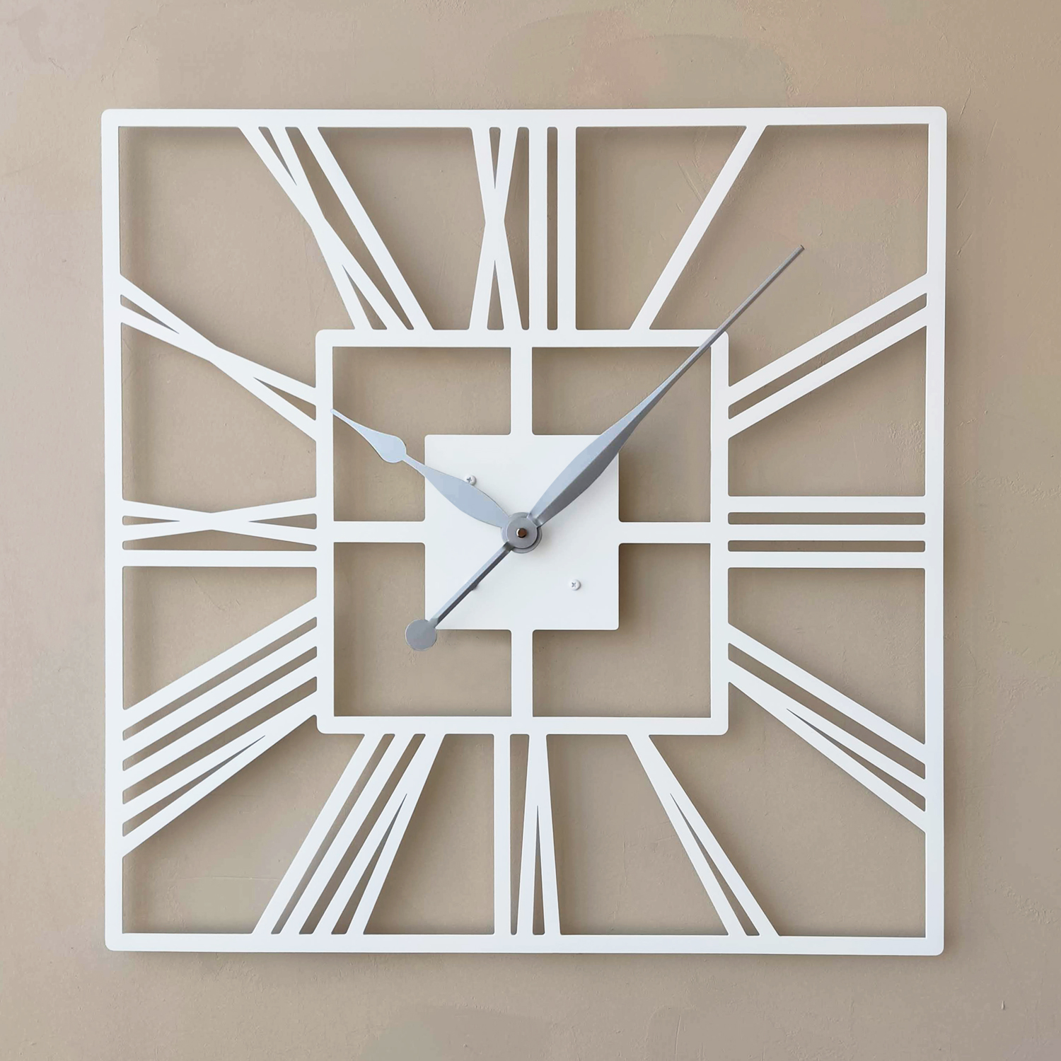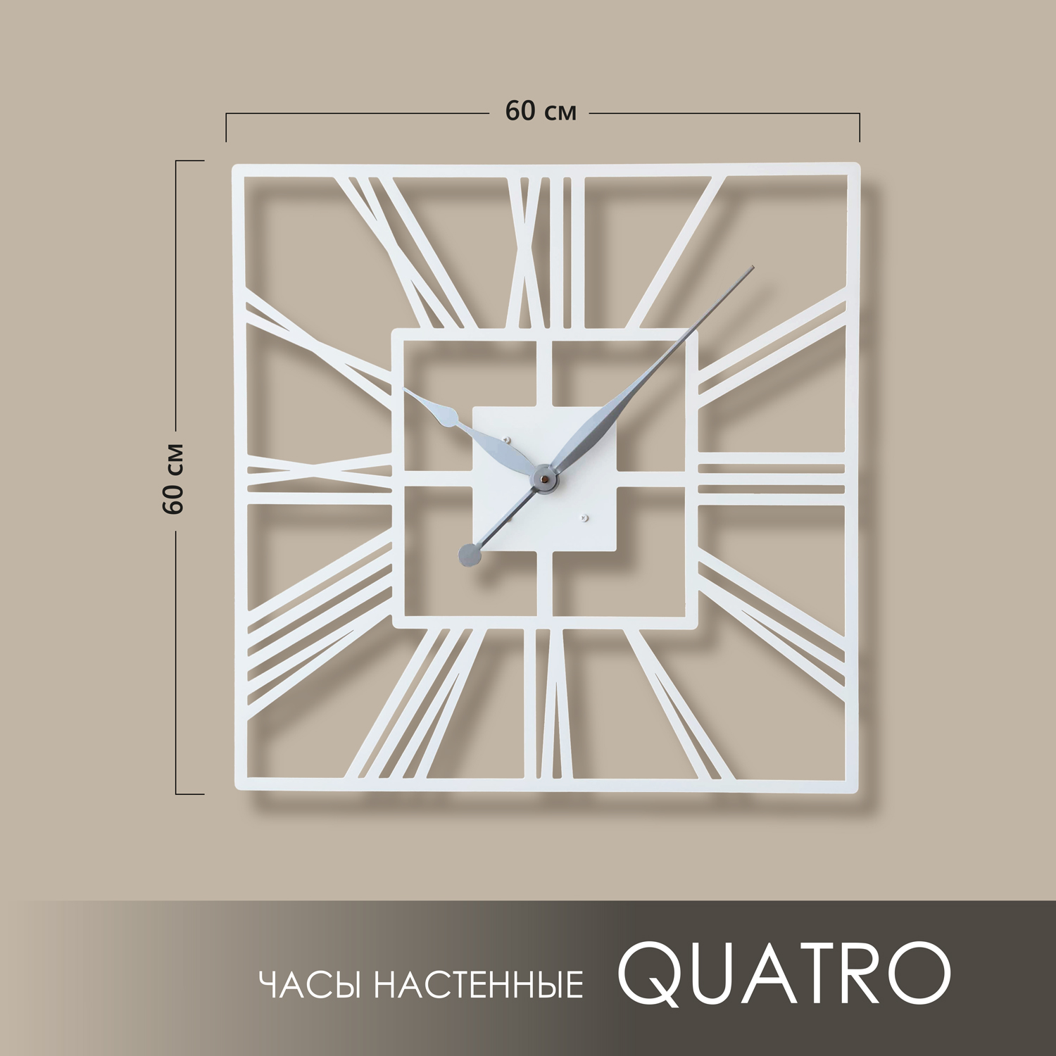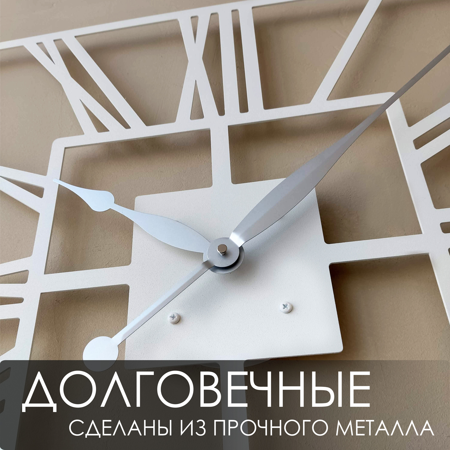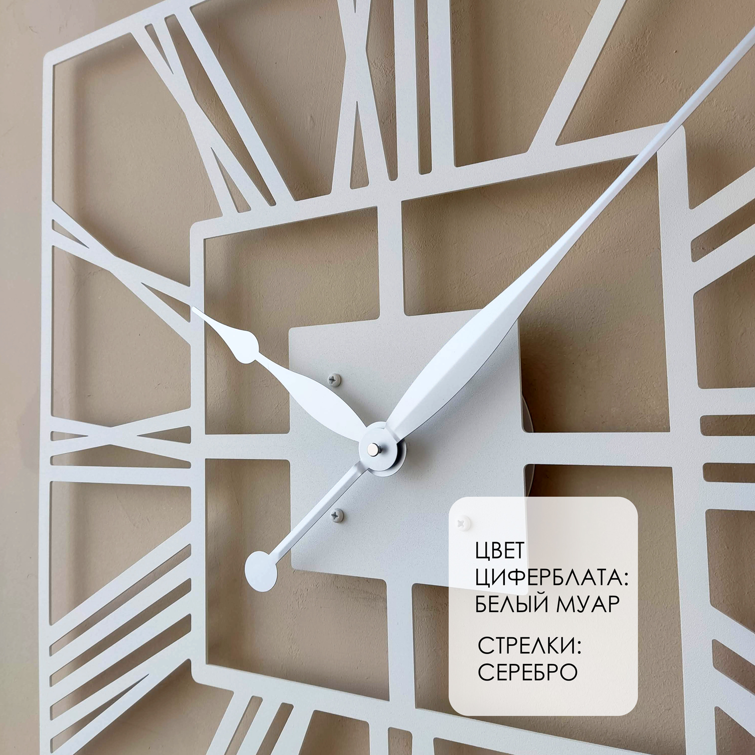 Большие настенные часы из металла Размер 60x60 см Цвет циферблата: белый муар Цвет стрелок: серебро
