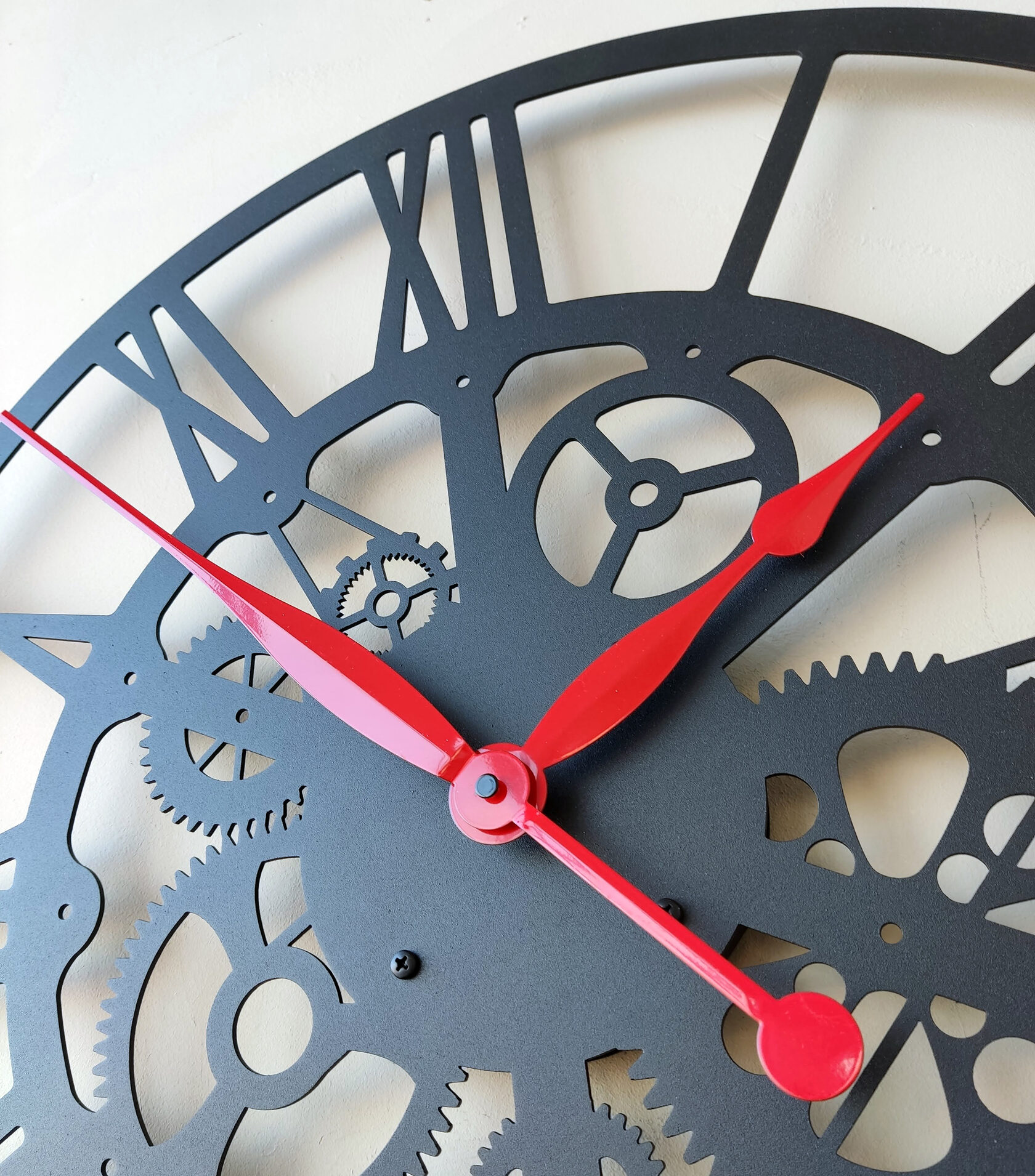 Эти большие настенные часы изготовлены исключительно из металла и окрашены экологичной порошковой краской. Такие часы впишутся в интерьер любого современного пространства. Они станут стильным домашним предметом интерьера, подчеркивающим красоту пространств, будь то лофт, минимализм, хай-тек, классика, модерн или дизайнерские интерьеры. Необычные большие настенные часы идеально подойдут в качестве подарка. На часах установлен надежный тихий механизм с плавным ходом, работающий от батарейки АА. Все права защищены и принадлежат правообладателю